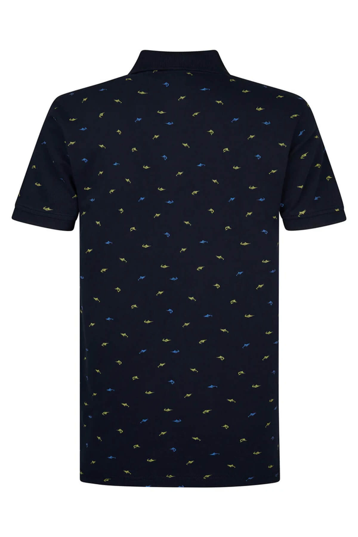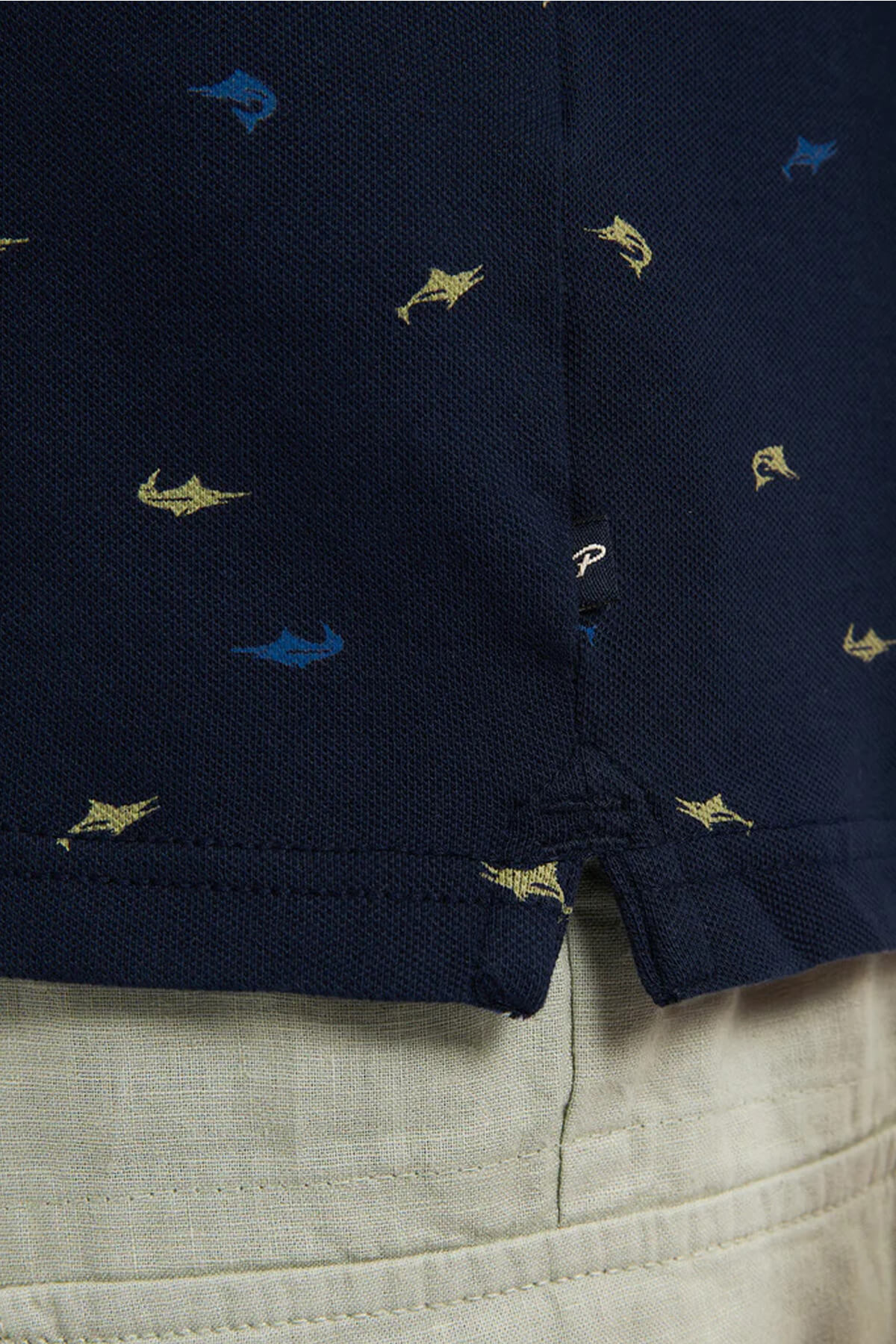 Πολό με all-over σχέδιο με ανοιχτό γιακά και κλείσιμο με κουμπιά. Αυτό το πόλο έχει ένα μίνι all-over σχέδιο και είναι κατασκευασμένο από 95% οργανικό βαμβάκι pique relix και 5% ελαστάν.