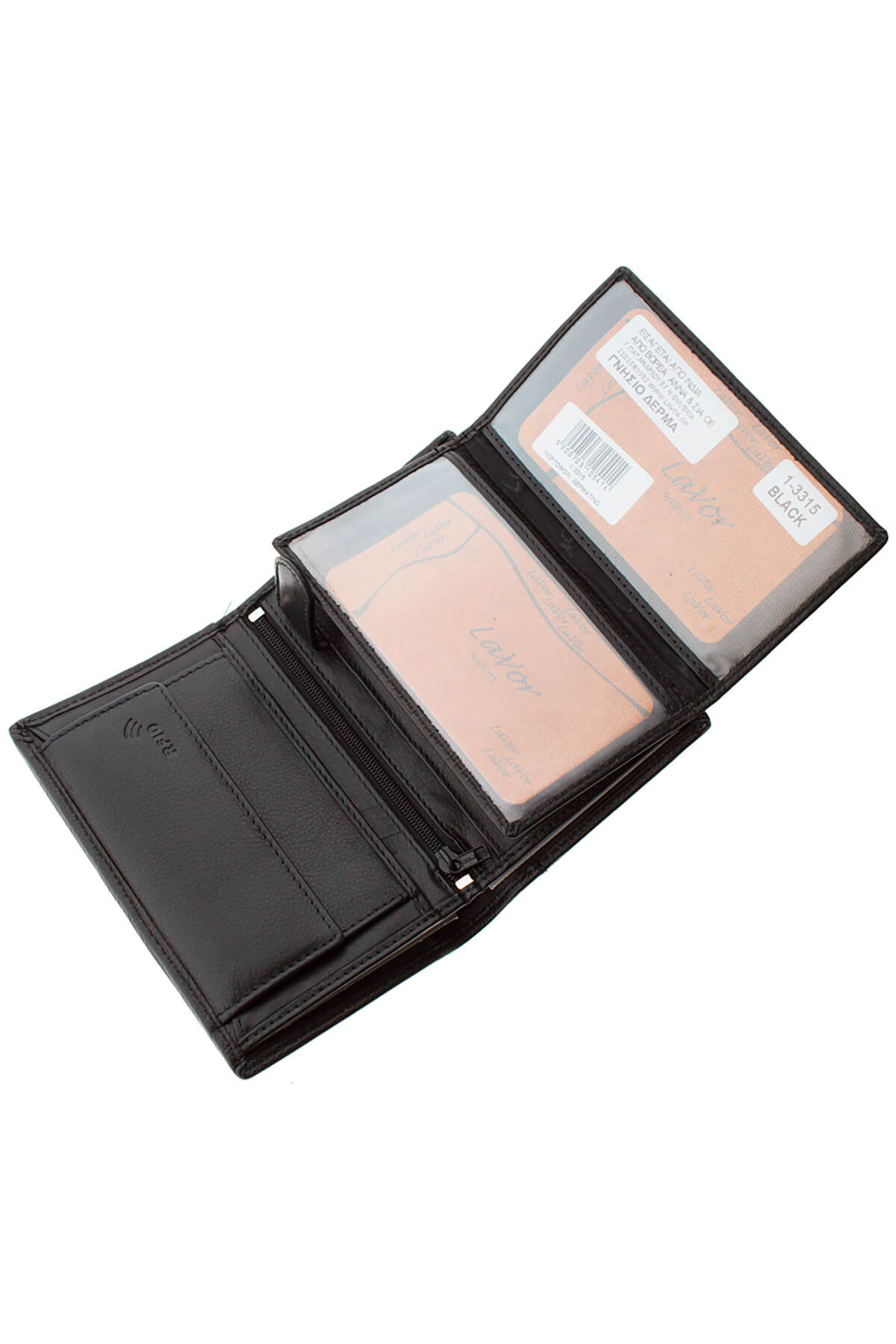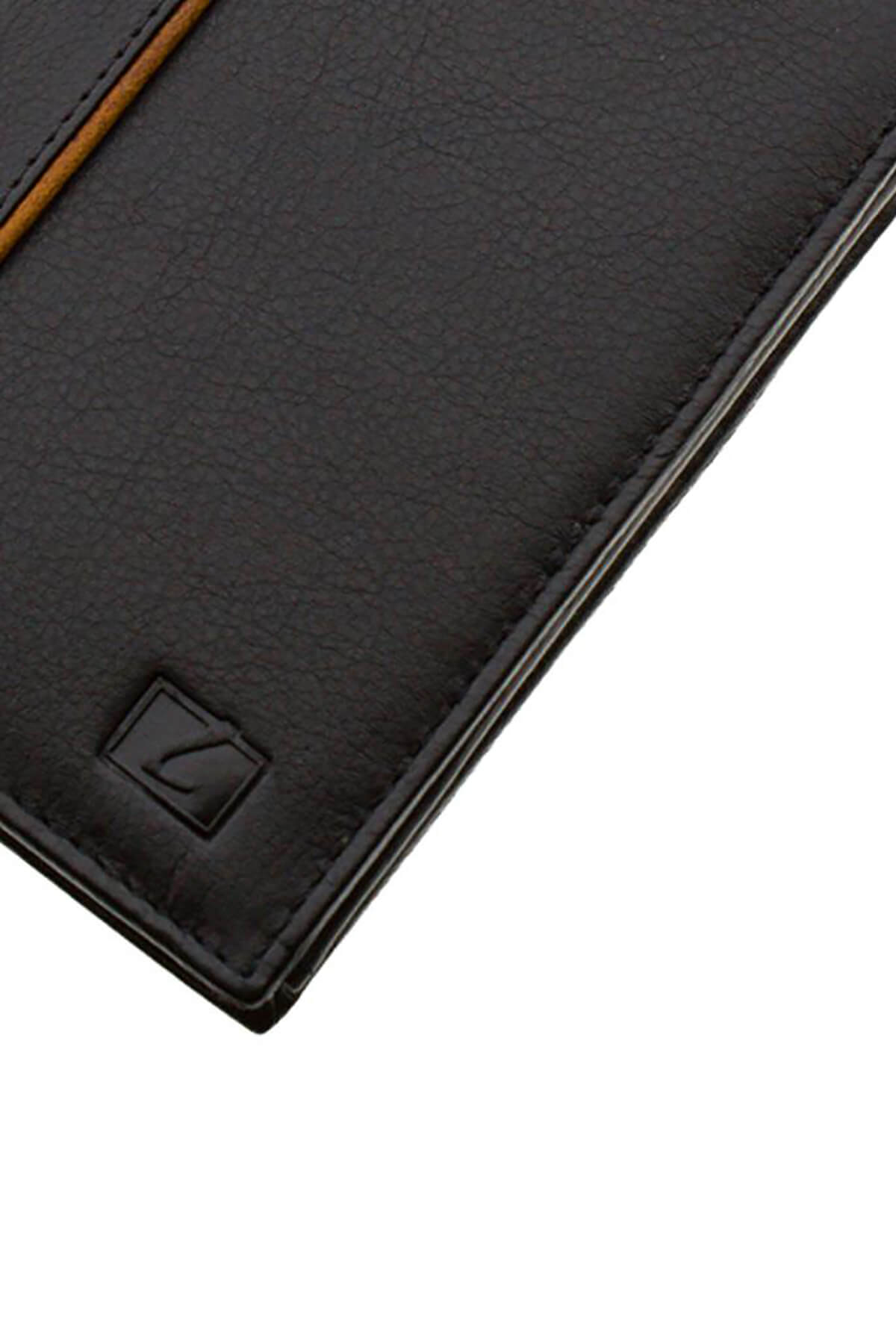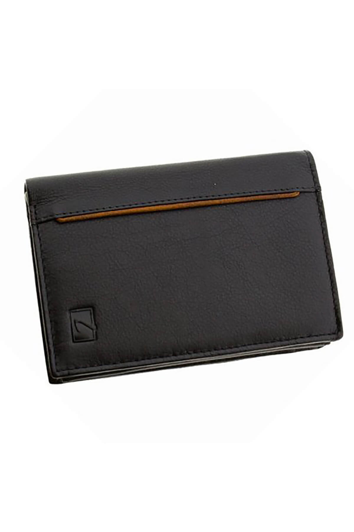 Wallet monochrome, upright in genuine natural calfskin leather of great durability & company logo on the front.