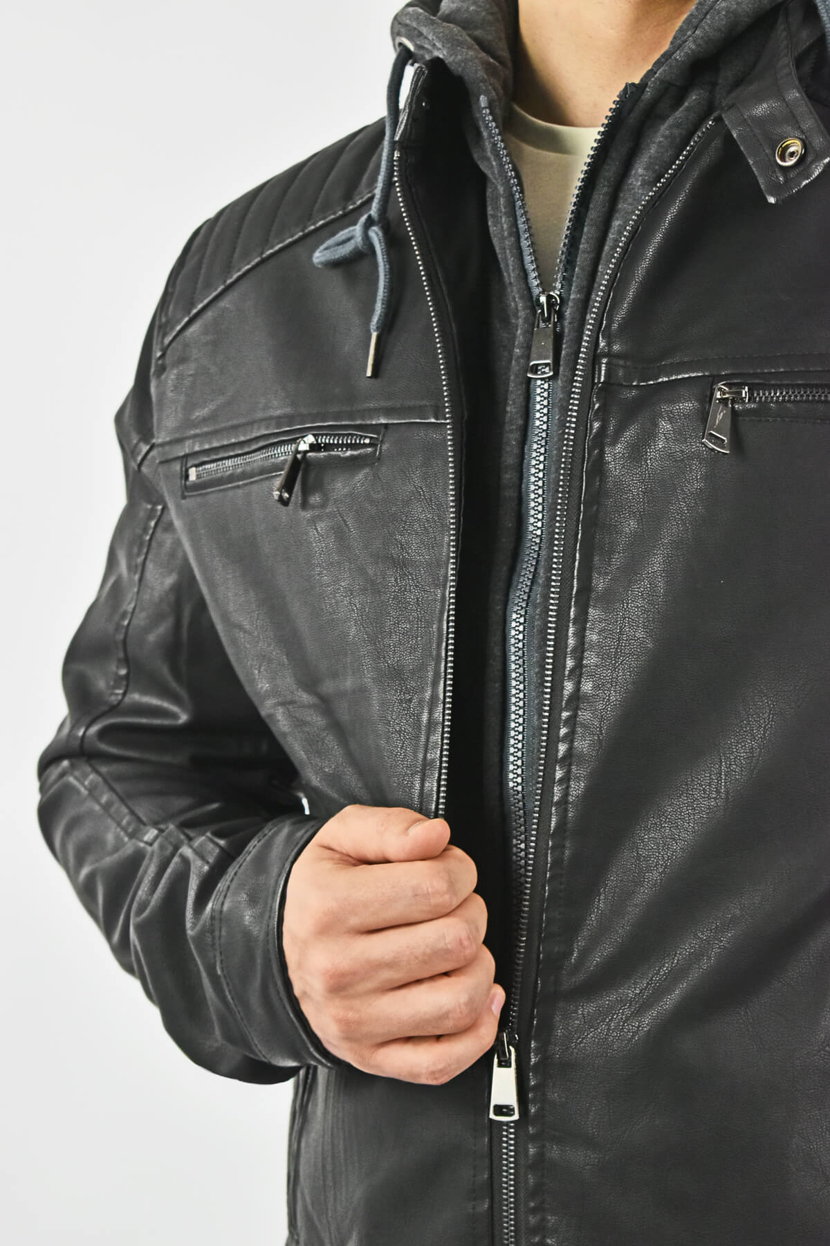 Men’s jacket with removable hood ideal for everyday appearances in every occasion. A classic short jacket with straight cuffs and waist, giving a modern style that highlights the man wearing it. Featuring a hoodie lining with double zip inside and outside of the jacket, offering warmth and youthful style to any winter outfit with long sleeve tops.