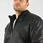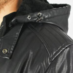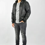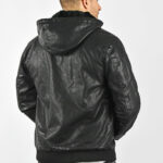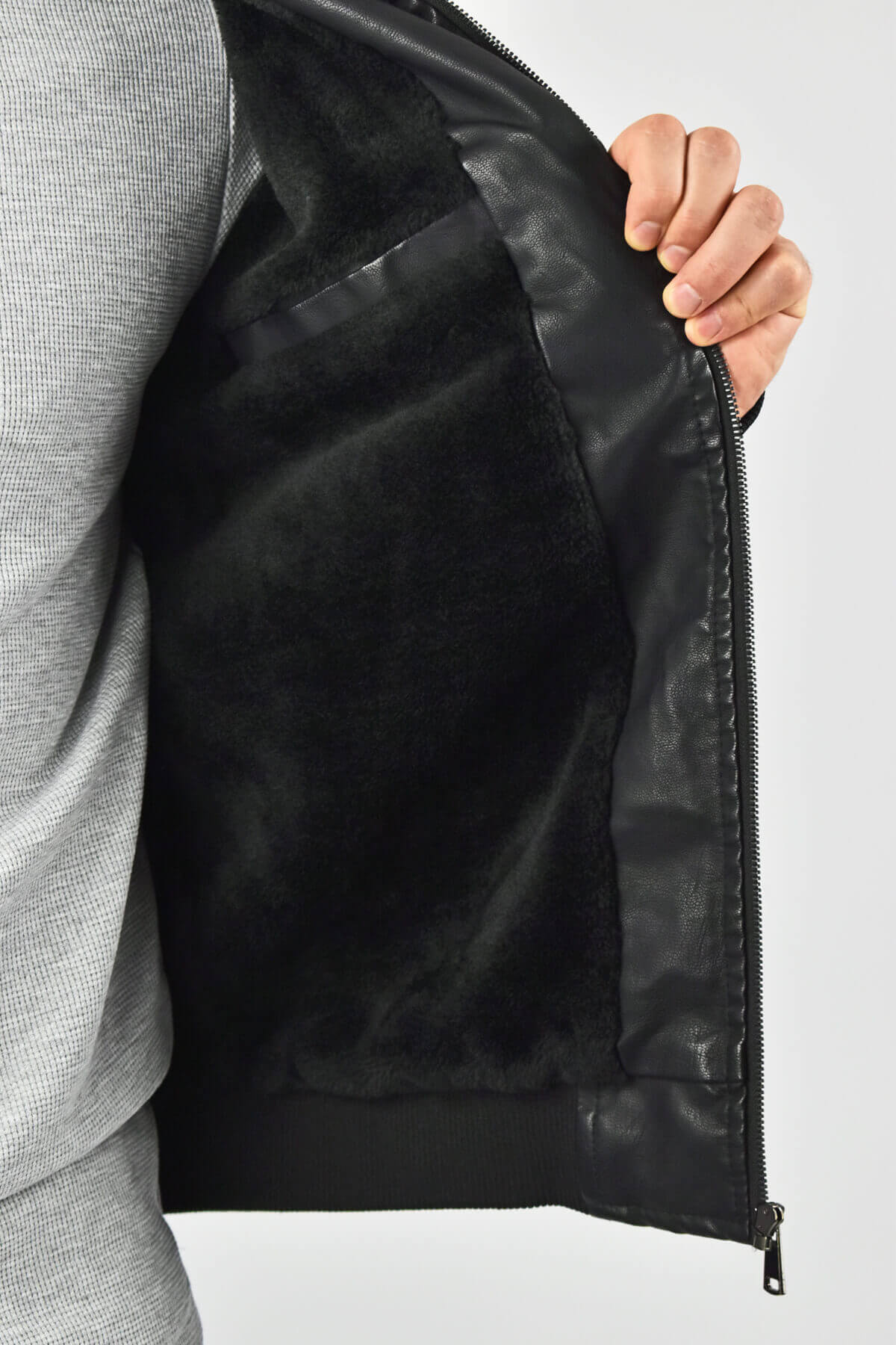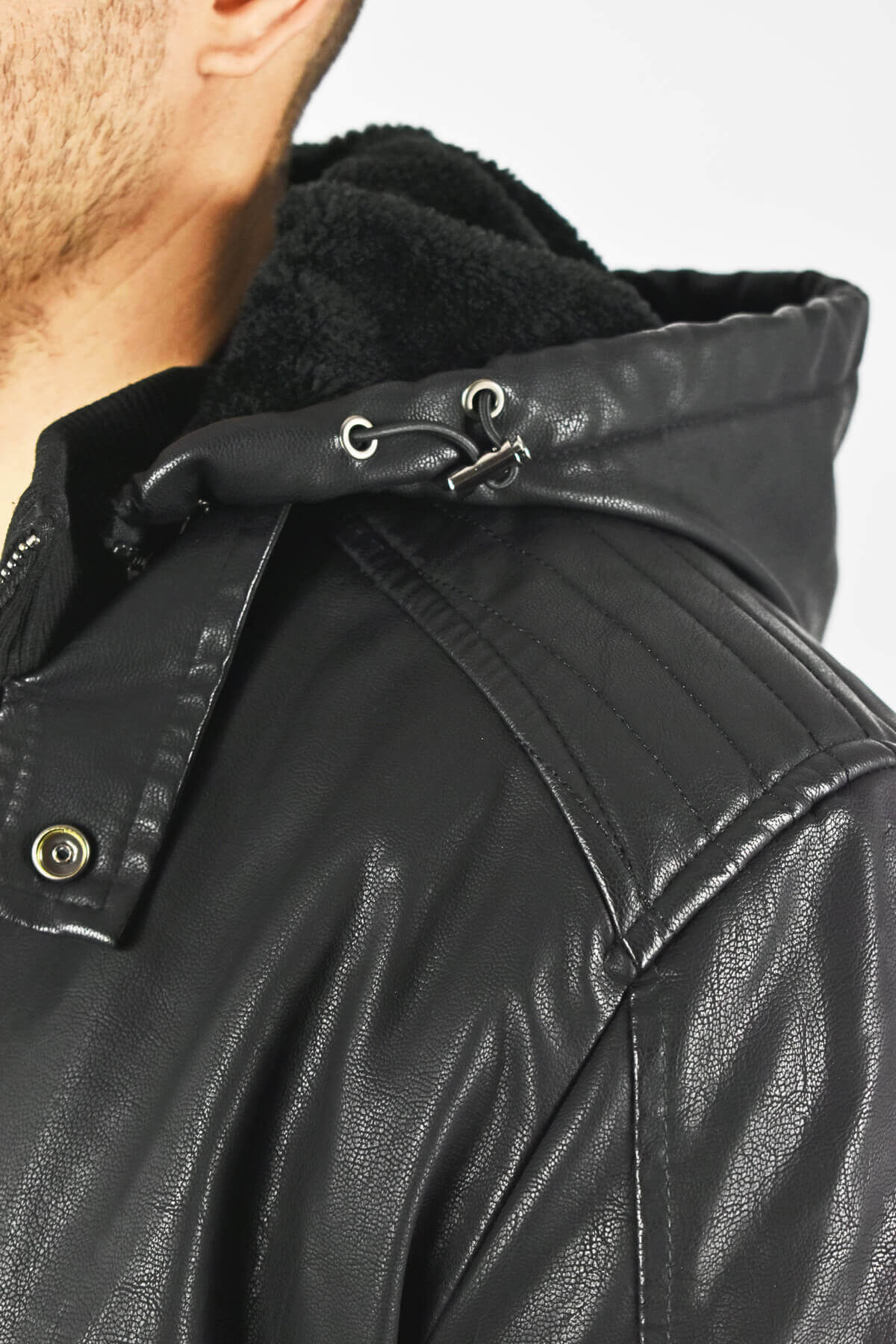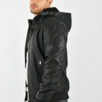 Men’s eco leather jacket with removable hood ideal for everyday appearances in every occasion. A classic short jacket with elasticated cuffs and waist, giving a modern style that highlights the man wearing it. Featuring a hoodie lining with double zip inside and outside of the jacket, offering warmth and youthful style to any winter outfit with long sleeve tops.